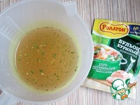В воде растворите куриный бульон, добавьте уксус, перемешайте. |