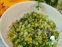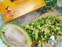 Очистите авокадо, удалите косточку и нарежьте мелким кубиком. Важно, чтобы все овощи были нашинкованы одинаковыми по размеру кубиками. |