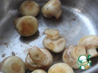 Быстро обжарить шампиньоны в 1 ч л растительного масла, буквально минуту, на сильном огне, мешая. |