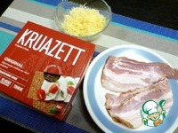 Подготовить ингредиенты для закуски. Сыр натереть на мелкой тёрке. За основу я взяла ржаные хлебцы Kruazett. Они отлично сочетаются с сырокопченым беконом. |