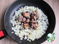 На растительном масле обжарьте мелко нарезанный лук до полупрозрачности, добавьте мелко нарезанные грибы (у меня замороженные), обжарьте, пока не испарится лишняя жидкость. |