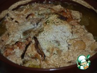 Описание: Предлагаю для Вашего праздничного стола очень вкусное насыщенное томленое мясо в сметанно-пивном соусе с грибами.