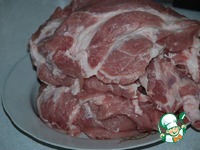 Нарезать свинину порционными кусками толщиной 1,5-2 см. |