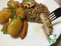 Сверху равномерно распределить приготовленную смесь и посыпать рубленными орехами. Ну и будущий гарнир можно пристроить по соседству. |