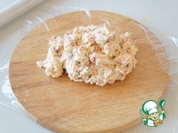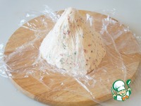 Сверху прикройте пищевой плёнкой и сформируйте руками конус. Перенесите конус на блюдо, плёнку снимите. |