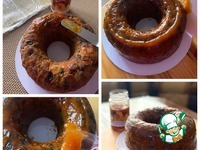 Обмазываем повидлом весь кекс и выравниваем как торт. Я использовала скребок, а потом ацетатную пленку, ее проще было загибать и она плотнее прилегала к кексу, тем самым помогает лучше удалять излишки джема. |