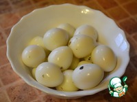 Между кусками рыбы положить целые отварные яйца. Поперчить. |