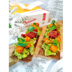 Соберите закуску. Щедро намажьте ржаные хлебцы Kroisett пастой из авокадо. |