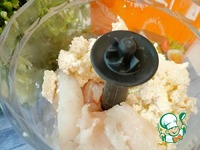 Филе судака (или любая белая рыба) и батон в сливках пропустите через мясорубку или пробейте в размельчителе, как это сделала я. |