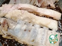 Ребра сварились, выложить их в сковороду, а бульон процедить. В сковороду с ребрами вылить соевый соус с медом, перцем и маслом. |