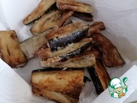 Обжаренные баклажаны переложить на бумажные салфетки. |