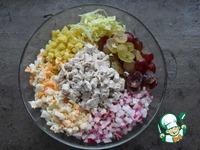 Описание: Рецепт салата, под названием "Американка" обнаружила лет 10 назад в одном из журналов. Этот салат заинтересовал необычным сочетанием вкусов и текстур. Так как я люблю сочетание сладкого и соленого, мягких и хрустящим текстур, этот салат занял место в моей копилочке рецептов.
