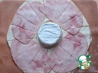 В центр круга положить сыр камамбер, вокруг него разложить ветчину. |