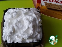 Выложить поверх десерта. Я выложила просто ложкой, но, разумеется, можно оформить верх и с помощью кондитерского мешка с насадкой. |