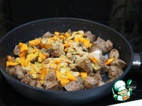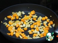 Лук и морковь порежьте произвольно, обжарьте до готовности на небольшом количестве растительного масла. |