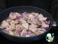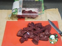 Печень нарежьте. Каждый кусок из пачки я делила на 4 части. |