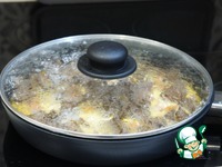 Влейте сливки. Протушите печень под крышкой ещё несколько минут. Главное, чтобы печень приготовилась до конца. |