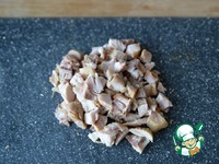 Отделяем филе индейки от кости и режем мелкими кубиками. |