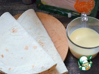Приготовить продукты. P.S.: Советую взять именно ветчину от ТМ Индилайт, вкус, размер, толщина ломтиков - всё устраивает на 100%. |