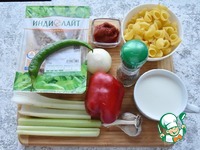 Готовлю продукты для приготовления болньезе. Пасту использую в форме ракушек, так как они хорошо удерживают соус. Вместо молока можно использовать сливки. Воду можно заменить на бульон. |