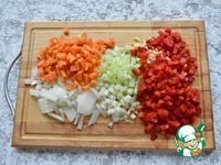 Болгарский перец, чеснок. лук, морковь, сельдерей нарезаю кубиком |