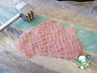 Стейк разрезать пополам и отбить кухонным молоточком до толщины примерно 3-5 мм. |