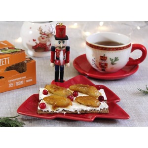 На хлебцы Kruazett намажьте творожную массу, сверху выложите карамельный банан. |