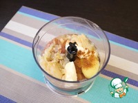 Измельчить до состояния пюре. Добавить орехи и груши. |