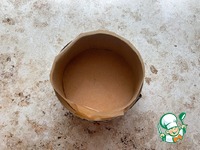Форму диаметром 11 см, высотой 4,5 см застелить бумагой для выпечки (дно и бока). |