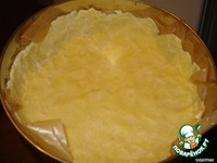Раскатать тесто в тонкий пласт и выложить в застеленную пергаментом разъемную форму диаметром 28 см таким образом, чтобы получились бортики высотой 2-3 см. |
