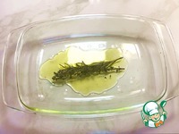 После чего в емкость для запекания наливаем оливковое масло, кладем туда травы и курицы. |