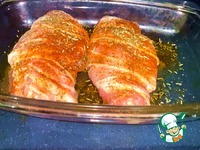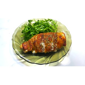 Описание: Вкусные запеченные рулетики из куриного филе с помидорами и беконом