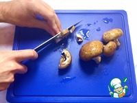 Первым делом на сковороду выкладываем бекон и на медленном огне вытапливаем из него лишний жир. После чего шампиньоны нарезаем небольшими кусочками. |