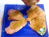 Затем приправляем его солью, перцем, приправой для курицы, сушеным чесноком. |