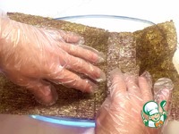 Когда все подготовлено в стеклянную емкость кладем нори. |
