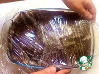 Затем накрываем торт пленкой и отправляем в холодильник на пару часов. |