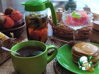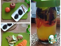 Воду кипятим и даём немного отстояться. Кипрей не заваривают крутым кипятком. Яблоко и мандарин хорошенько моем, обсушиваем полотенцем от влаги. Мандарин вместе с кожицей нарезаем поперёк на дольки, зёрна убираем. Яблоко разрезаем на четвертинки и убираем семена. Нарезаем слайсами. Помещаем в заварочный чайник, объёмом 1 л. Если нет такого чайника, то заварите чай в банке. Туда же отправляем чай чёрный и кипрей по 1 ст л, гвоздику 2 шт и палочку корицы. Заливаем отстоянным кипятком, примерно т-90-95 С. Завариваем 15 минут. |