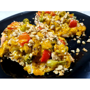 4. Противень выстелить пергаментом, перенести маринованное филе на противень, на каждое филе выложить начинку. Запекать в духовке при температуре 180С, 40 минут.