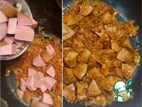 Прогрел хорошо и высыпал в чашу сардельки. И потушил, пока жидкость испарилась, а потом немного, типа поджарил. |