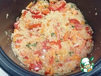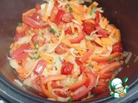 Добавляем в чашу помидоры, лук, морковь, перец и петрушку - Режим «Жарка» 12 минут. (Не забываем перемешивать каждые 3-5 минут). Желательно готовить с закрытой крышкой. |