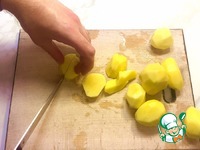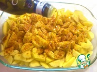 Сбрызгиваем картофель оливковым маслом, добавляем немного воды и хорошенько все перемешиваем. |