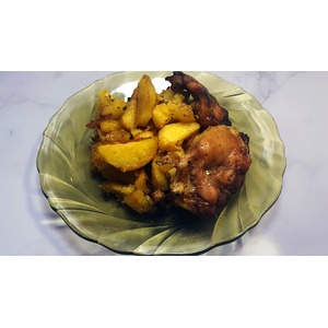 Описание: Вкусный ужин в одном противне. Запеченное филе бедра с картофелем