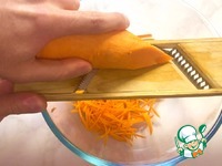 Первым делом у болгарского перца срезаем мякоть и нарезаем ее тонкой соломкой. |