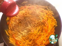 Наливаем немного соевого соуса и оставляем тушиться овощи до момента пока вся влага не испарится. |