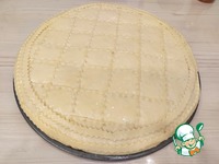 4. Хочу сказать несколько слов о самом тесте. Тесто, с недавнего времени, я не ставлю на длительную расстойку. Достаточно 5-10 мин. А если вы хотите сделать по настоящему красивую, праздничную выпечку, с оформлением поверхности пирога, то лучше не расстаивать подготовленный для выпекания пирог вообще, потому что при расстойке, рельефность и украшения растекаются и имеют непривлекательный внешний вид. Т. е. сделали узор из кусочков теста, оформили пирог и сразу отправляйте его в печь для выпекания.