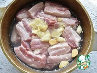 После того как мясо будет готово, отключите огонь, слейте бульон и дайте мясу остыть. |