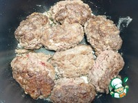 Отправляем в чашу масло и котлеты — Режим «Жарка» 14 минут. (Не забываем перевернуть (примерно минут через 7)). |