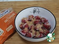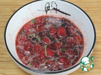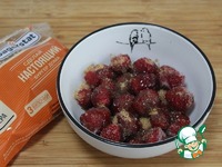 Слегка перемешать и оставить оттаивать. После того кка клубника оттаяла, слегка надавить на ягоды толкушкой, не надо сильно разминать. |