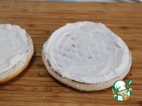 Нанести творожный сыр на поджаренные срезы. Я по краям делала малюсенькие бортики из сыра, так клубника не будет скатываться вниз. |