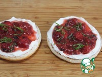 Выкладываем клубнику на сыр и присыпаем тонко порезанными листиками базилика. Подаем и наслаждаемся! |